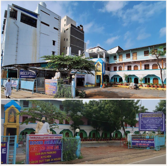 Thiruvalluvar Rest House in Velankanni offers comfortable, affordable accommodations close to Velankanni Church, featuring spacious rooms, dining, and 24/7 front desk support.