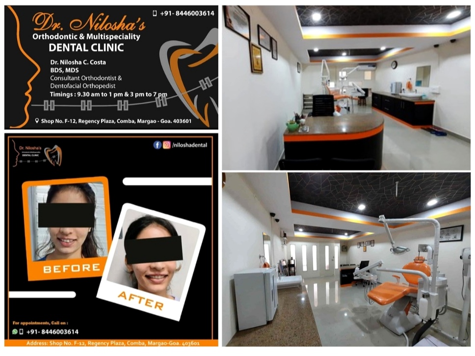The dental clinic offers orthodontic services by the in house Orthodontist and dentofacial orthopedist Dr. Nilosha Costa who's has spent several years mastering the skills in the field of orthodontics. She has experience in this field and has been treating variety of cases and patients belonging to different age groups as well. Besides which, other dental services provided are Root canal treatments, Extractions, Replacement of missing teeth, Implants, teeth whitening, Botox and fillers making it an excellent multispeciality dental clinic in the heart of Margao city