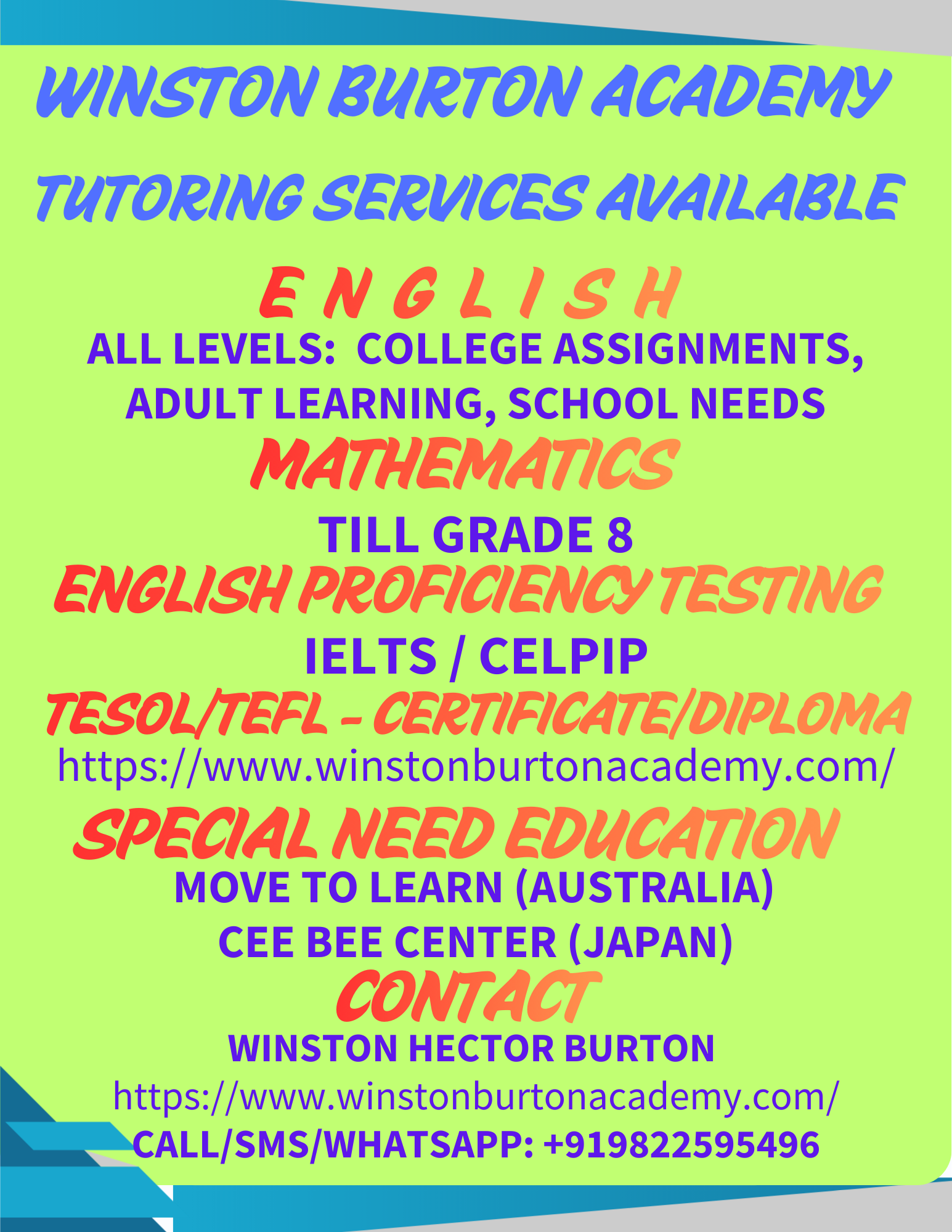 Winston Burton Academy in Pune offers dedicated tuition classes focused on academic excellence and student growth. Led by Winston Burton, the academy provides structured guidance, personalized attention, and strong conceptual learning. Committed to helping students achieve their academic goals, the academy fosters confidence, discipline, and consistent performance improvement in a supportive environment.